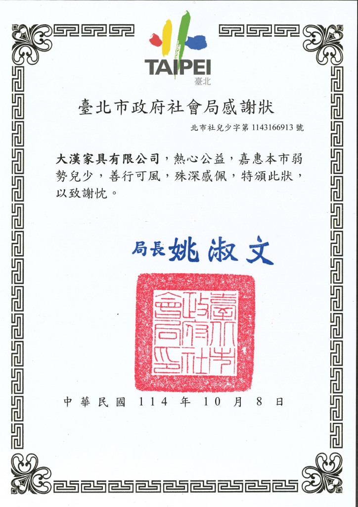 身為深耕台灣多年的家具品牌,大漢家具始終相信:企業的價值,不僅體現在產品與服務之中,更體現在對社會的長期投入。