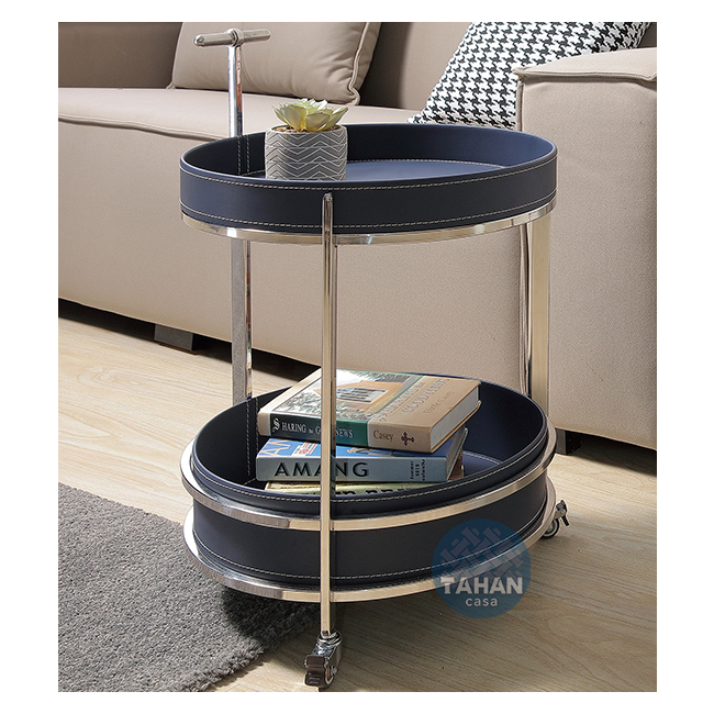 保羅1.5尺馬鞍皮推車小茶几