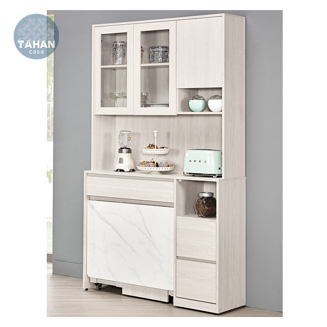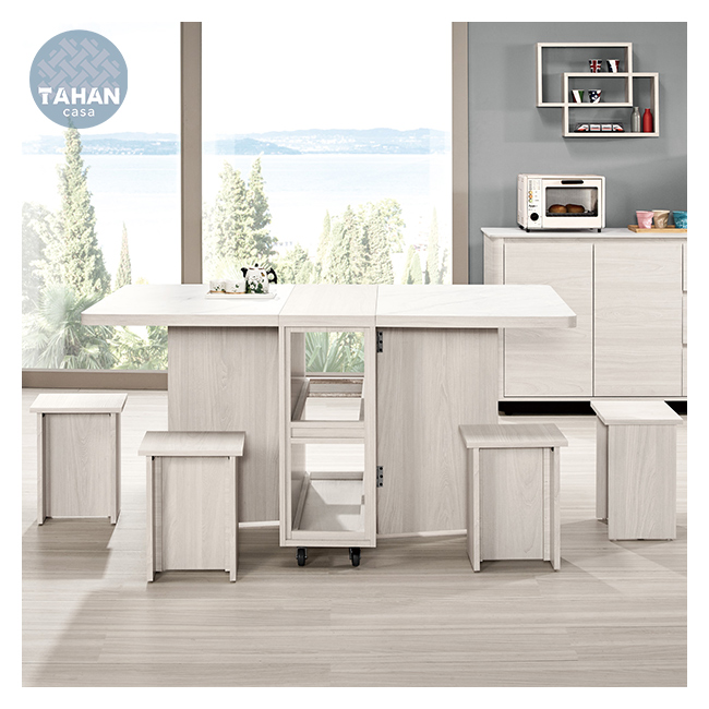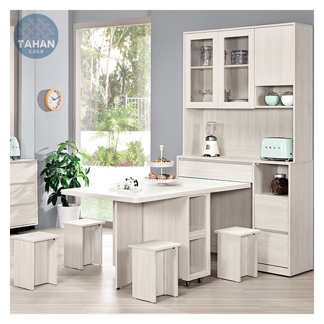 4尺仿石面組合餐桌櫃,附輔助椅4張、活動隔板2片