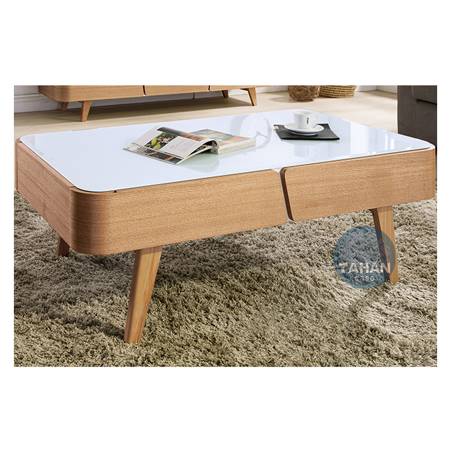 雷克斯3.8尺原木玻璃大茶几